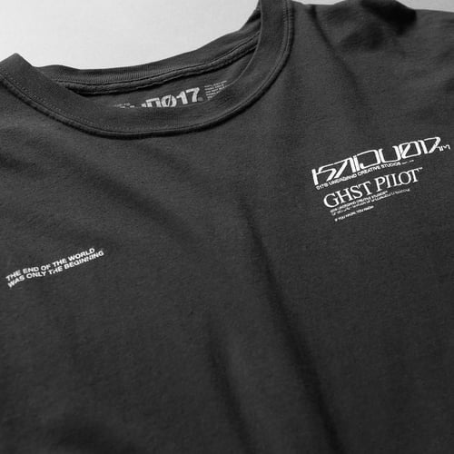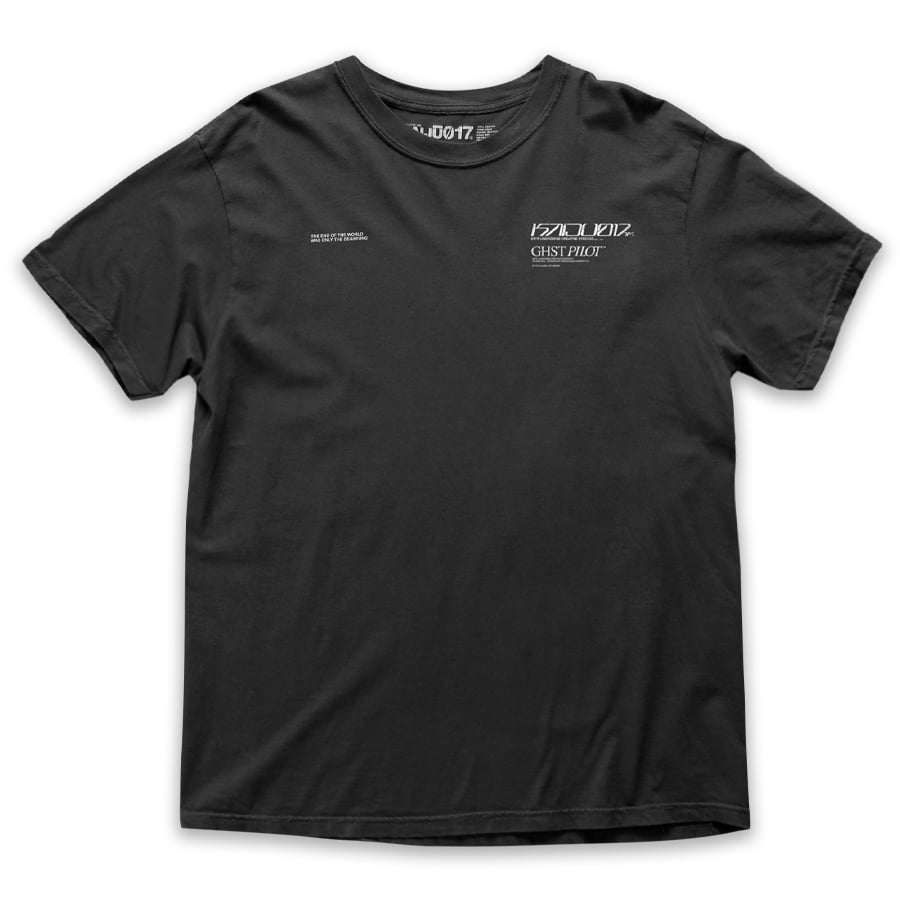 Mid weight short sleeve tee pigment dyed black. Classic fit. Print color vintage white. 100% Cotton. Classic fit. For an oversize fit please size-up one.
